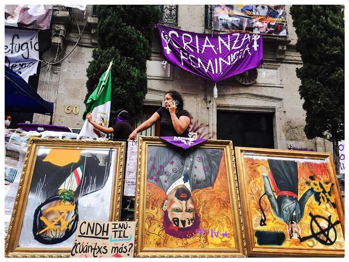 Ante la creciente violencia contra las mujeres en México y la inoperancia de los órganos de justicia, las instalaciones de la Comisión Nacional de Derechos Humanos fueron tomadas por familiares y cíctimas de la violencia y mujeres feministas.