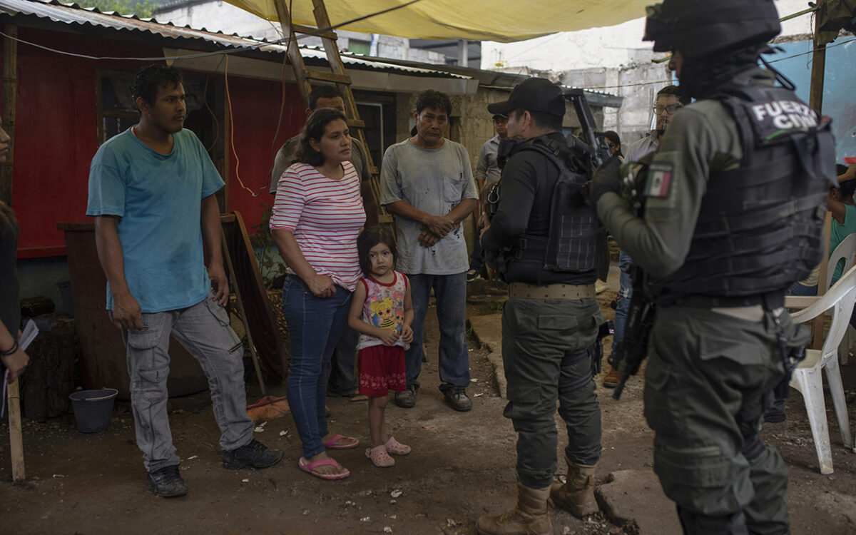 Familiarnes del periodista Julio Valdivia se entrevista con elementos de la Fuerza Civil a quienes les piden protección durante los próximos días debido al temor e incertidumbre que reina en la casa ubicada en una colonia popular de Tezonapa, Veracruz.