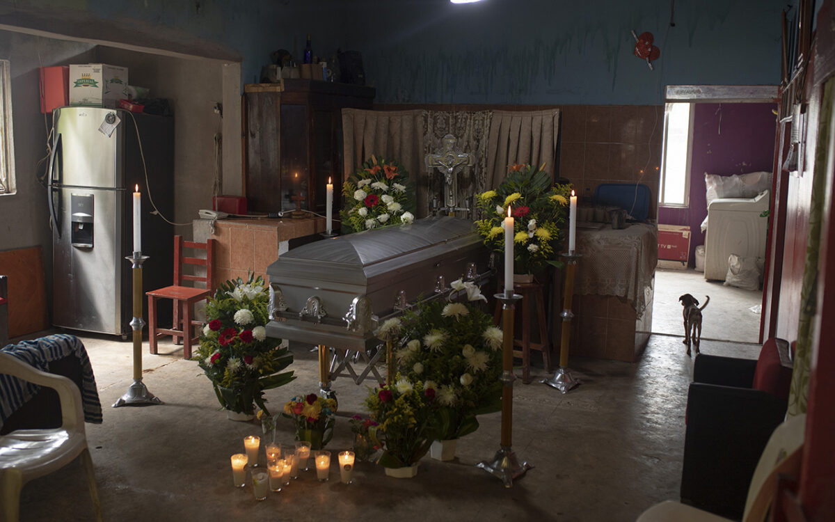 TEZONAPA, VERACRUZ.– En cuanto le avisaron que su esposo estaba muerto, Guadalupe se sintió en shock y sólo pensó: “no tengo dinero ni para comprarle flores”. Hoy está junto al cuerpo de su pareja, el periodista Julio Valdivia, a quien unas 20 personas lo despiden en un sobrio féretro metálico, sin adornos, porque es el más barato que ella consiguió fiado en este pueblo de Veracruz.
