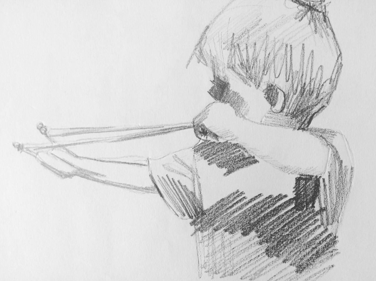 Niño con resortera, 2017, lápiz sobre papel, 17 x 24cm