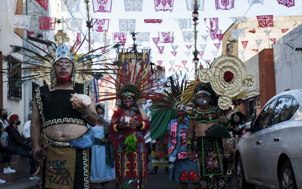 “Nosotros tenemos muy en claro que es aquí, en el sangremal –hoy San Francisquito– donde nace la tradición conchera”; así lo expresa Miguel Martínez Cardona, capitán general de una de las mesas de danzantes más antiguas del país. “Y por ello, aún después de la ocupación colonial, nuestro barrio siguió albergando y preservando las sagradas formas de la danza. Y aún con los genocidios que se perpetraron contra nuestro pueblo, seguimos preservando nuestra identidad originaria, la cual hoy se ve amenazada por los intereses políticos y empresariales que han desencadenado la gentrificación en nuestro barrio y la ocupación de otros pueblos originarios.”