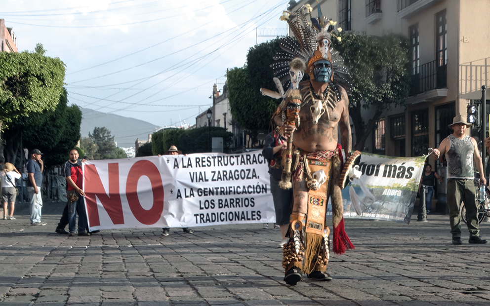 “Nosotros hemos visto que en San Francisquito está aconteciendo un fenómeno con estas características”, señala Braulio Ayala, danzante conchero. “En los alrededores del barrio han construido complejos residenciales y grandes centros comerciales, así como  galerías de arte dentro del barrio que no tienen ningún vínculo con los vecinos o las problemáticas de acá. Y tras años de funcionamiento han generado afectaciones a las vecinas y vecinos, que van desde problemas de vialidad y la modificación de usos de suelo, hasta el incremento en costos de renta o el valor catastral de las propiedades.”