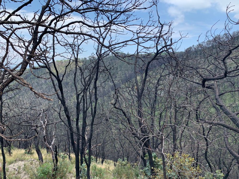 Algunos árboles del Bosque de La Primavera aún muestran los estragos de los incendios ocurridos en 2019 (Foto: Ximena Torres).