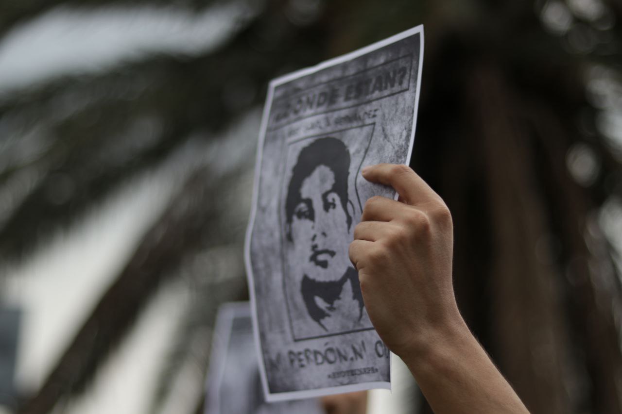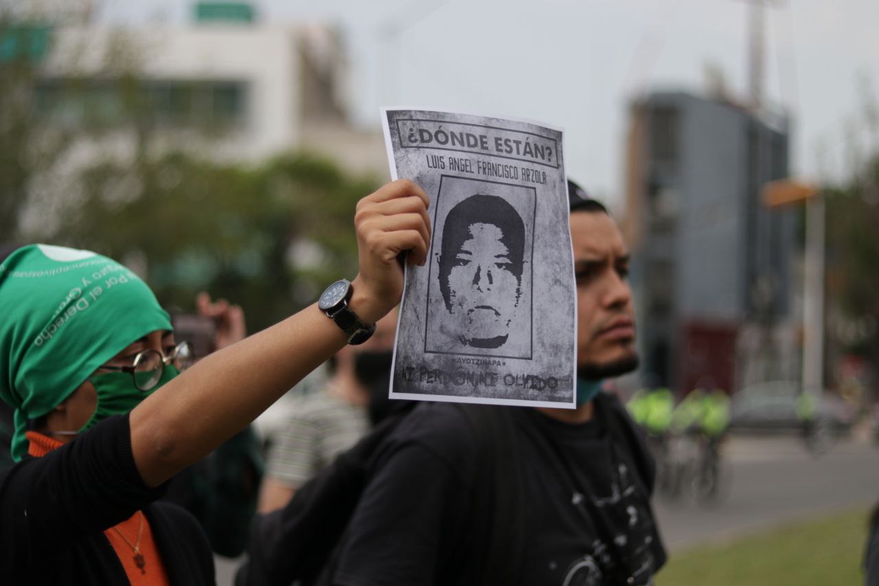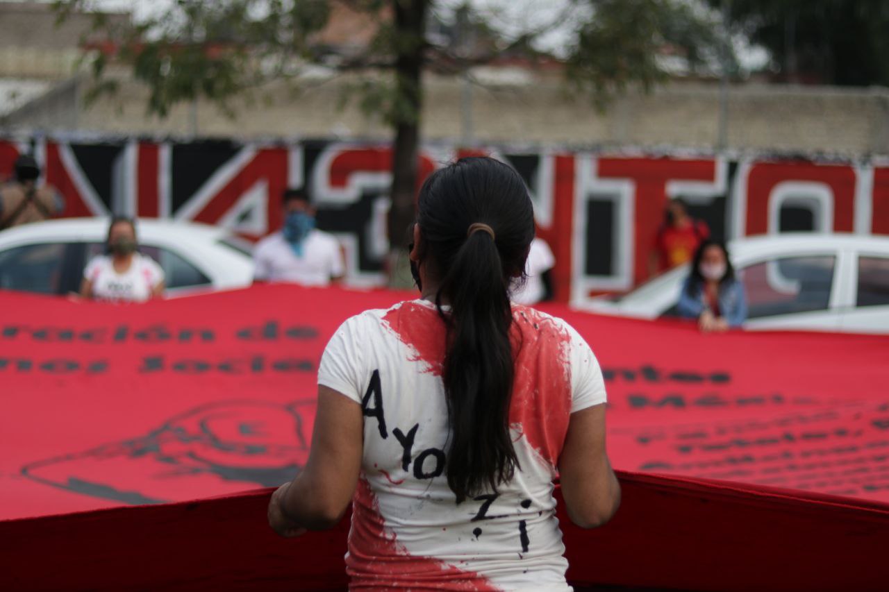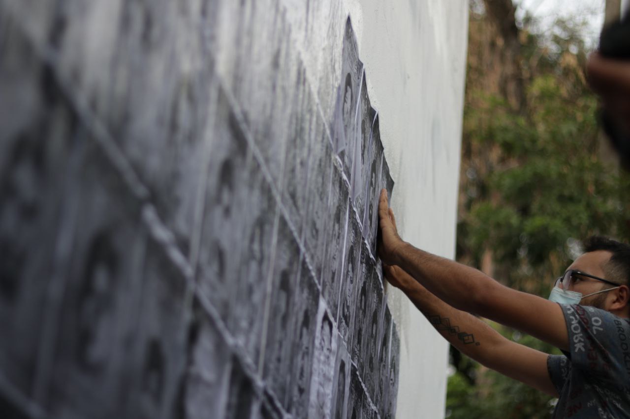 Uno de los momentos más emotivos de la marcha, antes de que la lluvia cayera sobre las y los asistentes, fue la inauguración del mural “Ni perdón, ni olvido” realizado por el colectivo #SinJusticiaNoHayPaz.