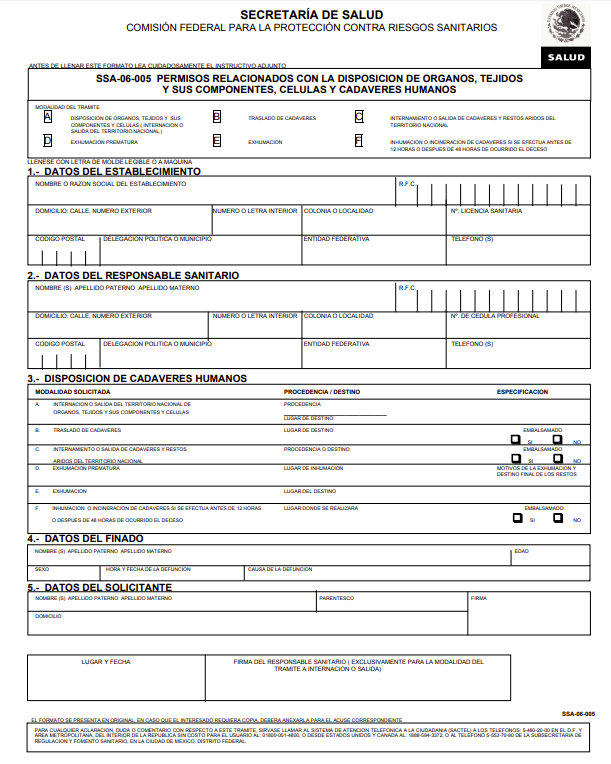 Como la mayoría de los documentos entregados por las instituciones no detallan cada donación, sólo contienen totales de los cuerpos entregados o recibidos desde el año 2000, no es posible determinar las causas de las discrepancias. Ello, a pesar de que la Secretaría de Salud cuenta con el formato SSA-06-005, que debe tramitarse cuando una institución va a trasladar o disponer de un cadáver, o para notificar su inhumación o incineración.