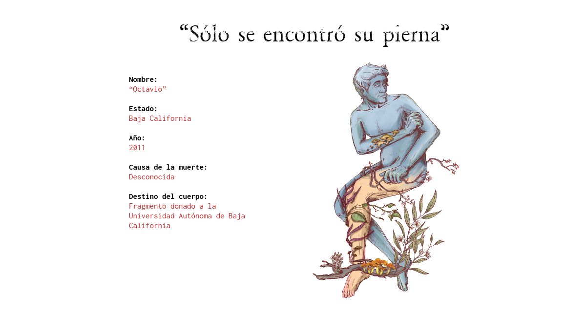 De acuerdo con el activista, la versión oficial que manejó la dependencia es que habían donado la pierna de “Octavio” por error junto con el cuerpo de otra persona, pues ambas víctimas habían sido desmembradas.