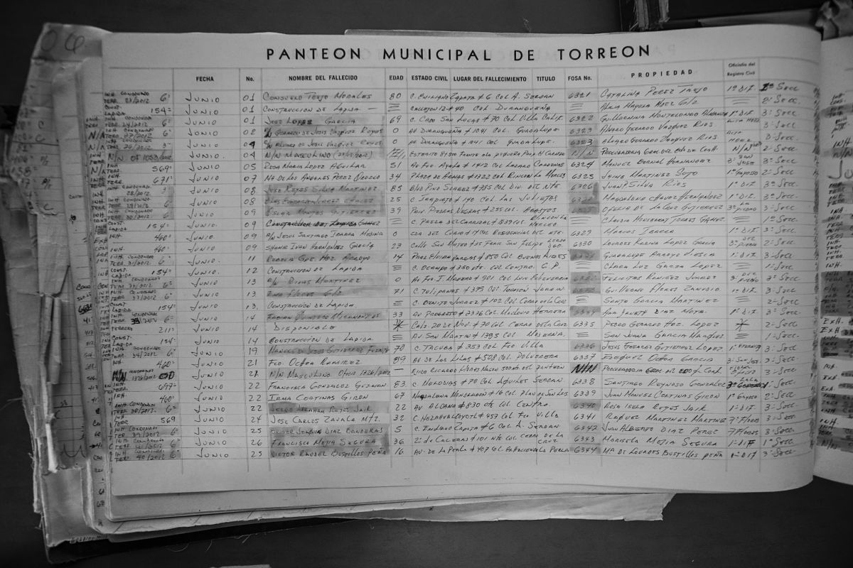 Recuperar el cuerpo de Cosme ha sido otra peregrinación por los laberintos de la burocracia que extravía a personas. A Marcela Balderas le dijeron primero que habían donado el cuerpo a la facultad de Medicina de Torreón, a donde según cifras oficiales la Fiscalía entregó 46 cuerpos no identificados de 2012 a 2017. Luego, que siempre no. En ninguno de los dos panteones municipales hay registros de la inhumación de su hijo. Funcionarios de la Fiscalía de Desaparecidos le han dicho a la señora Balderas que creen, por recuerdos del panteonero, que su hijo podría estar en el cementerio número 2 de Torreón. Pero no hay dato que lleve a la fosa donde lo enterraron.