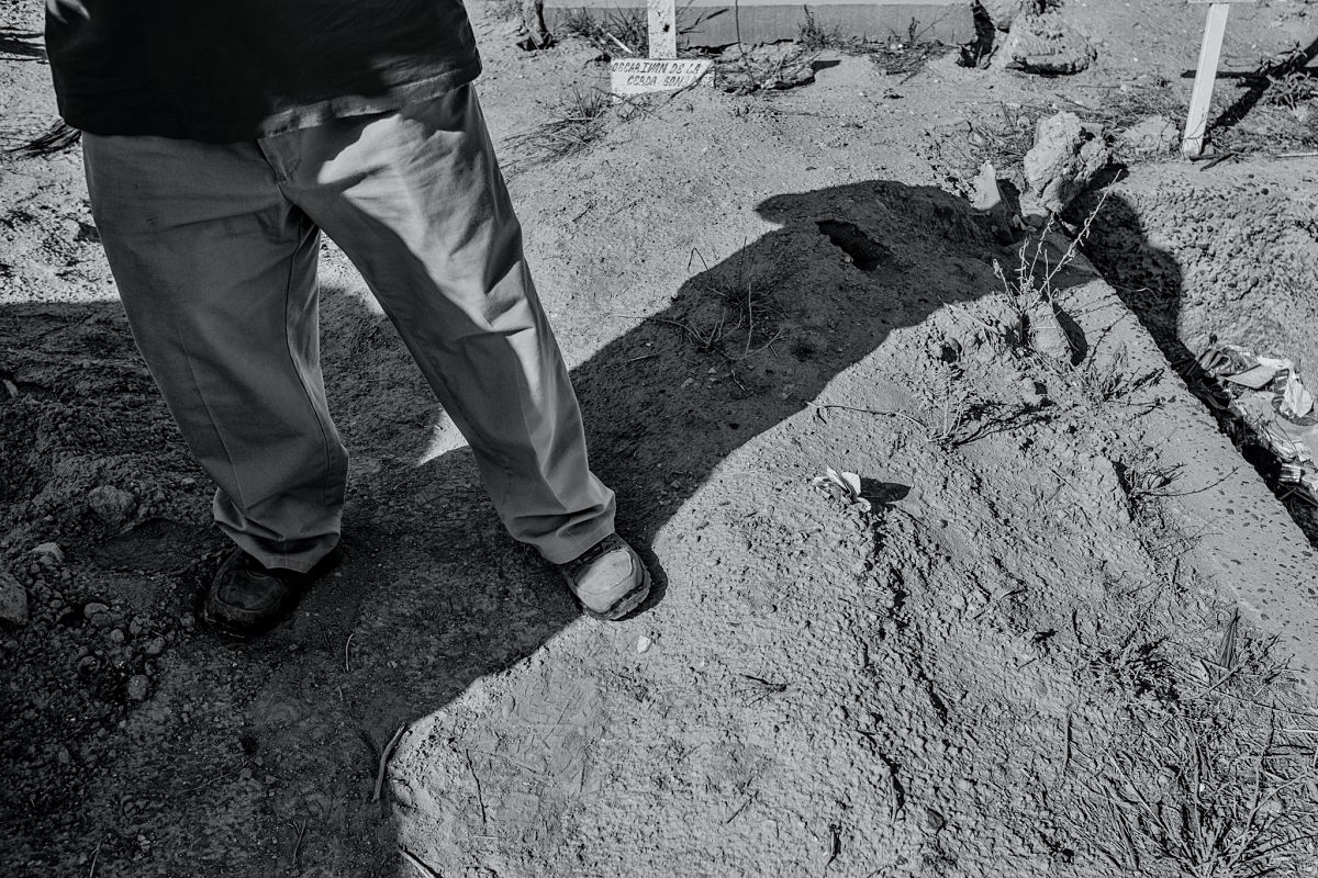 El sepulturero del panteón 2 es Apolinar Pérez que arrastra 24 años caminando entre tumbas y fosas. Cuando le pido a Apolinar -hombre de gorra beisbolera y zapatos desgastados- me señale dónde están las fosas comunes, me lleva a la parte alta del cementerio. Entre las tumbas me dice: “aquí es donde hay más”, y extiende el brazo sobre los montones de tierra caliente sobre la que estamos parados y donde no hay ningún señalamiento. Sólo Apolinar sabe dónde están, pero desconoce cuántas son.