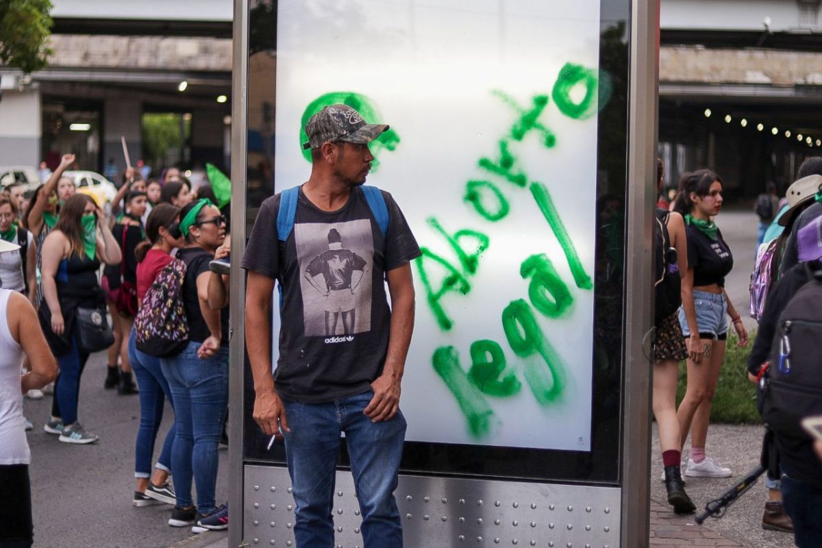 En el centro histórico ya las esperaban también los grupos antiderechos, quienes, formando una valla humana, rodearon la Catedral de Guadalajara con rosarios, sogas y rezos; buscaban proteger de los grafitis la estructura de piedra que “resguarda su Dios”, pero que persigue, señala, castiga y criminaliza a las mujeres que han rechazado el dogma del hombre y que han decidido sobre la “única vida que importa”: la vida de las mujeres, señalaron.