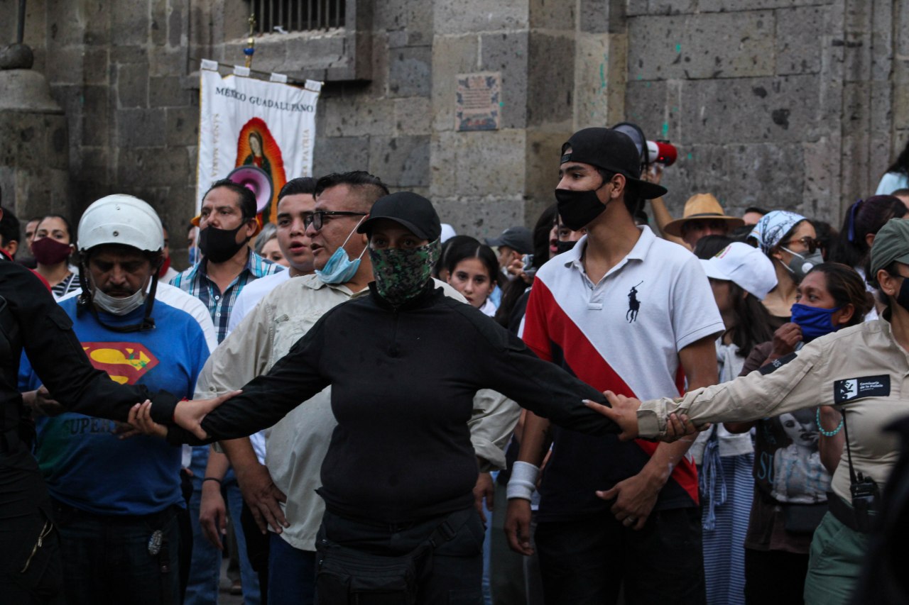 Frente a la resistencia de los grupos antiderechos, quienes en múltiples ocasiones rodearon el edifico emblema del catolicismo en el estado, fue desplegado un grupo de mujeres antimotines que se encargaron de replegar a las manifestantes que se encontraban en las inmediaciones del lugar. Lenchanteé Corona, nombre Drag que representa la lucha política de una de las integrantes de la Batukada Feminista Guadalajara se pronunció al respecto asegurando que este acto por demás violentó evidenció cómo es que el miedo cambió de bando y a quiénes en realidad está resguardando el Estado: