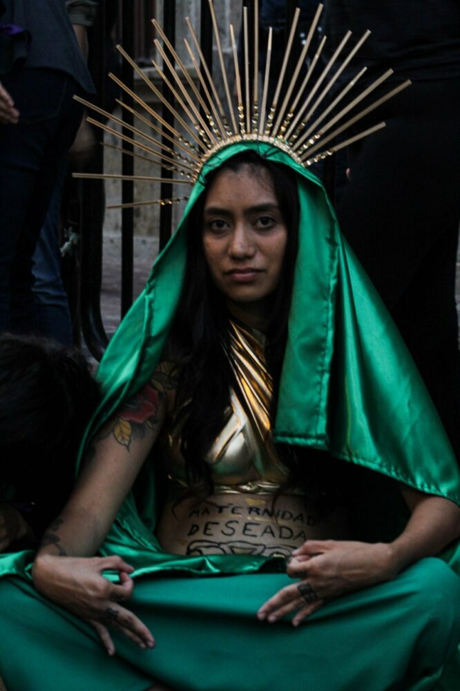 Ya frente a las puertas del Congreso del Estado de Jalisco ubicadas sobre la calle Hidalgo a un costado de Plaza Liberación, pronunciaron algunas plegarias a la Santa Abortera: “Que el aborto no sea la hora de nuestra muerte y que voluntario sea el fruto de nuestro vientre”, repitieron junto al repicar de una campana.