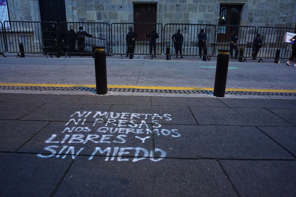 La movilización por el Día de Acción Global por un Aborto Legal y Seguro en la capital del estado estaba programa para arrancar en punto de las 5:00 p.m. del Monumento a La Madre rumbo al Congreso del Estado de Jalisco en el centro histórico, sin embargo, desde antes de las 4:00 p.m. los edificios del Poder Legislativo y Palacio de Gobierno ya se encontraban resguardados por policías estatales y vallas metálicas.