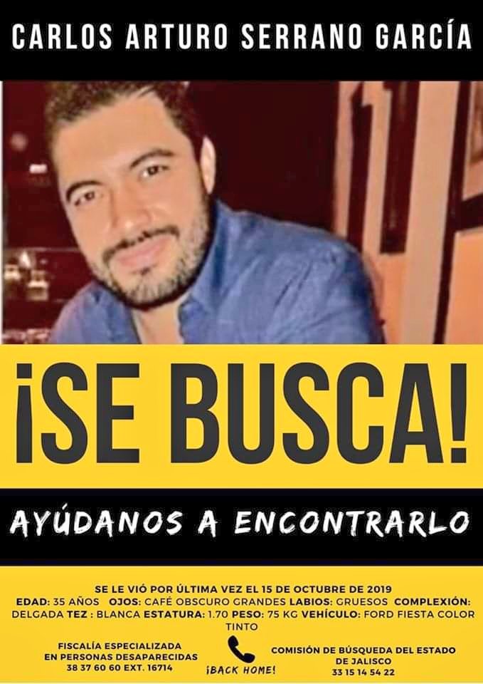 Por ahora, la familia Serrano García está siendo acompañada por el Centro de Justicia para la Paz y el Desarrollo (CEPAD), así como por el Colectivo de familiares de personas desaparecidas en Jalisco, Entre Cielo y Tierra; también, ha lanzado una petición dirigida al Gobernador de Jalisco, Enrique Alfaro; al Presidente de la República, Andrés Manuel López Obrador, a la Fiscal Especial en Personas Desaparecidas de Jalisco, Blanca Jacqueline Trujillo; a la titular de la Comisión Local de Búsqueda, Francelia Hernández Cuevas; y al Presidente de la Comisión Estatal de Derechos Humanos Jalisco, Alfonso Hernández Barrón, a través de la página change.or, con el objetivo de recabar firmas y exigir a estas autoridades la localización de Carlos Arturo y el esclarecimiento de los hechos que llevaron a su desaparición.