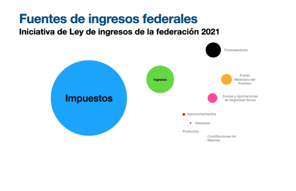 Si la bolsa de todos estos ingresos fuera un pastel, lo que se discute en la Ley de Ingresos sería los ingredientes y su tamaño a repartir. Se estima que el tamaño del pastel para el 2021 será de $6’295,736’200,000 (Seis billones, doscientos noventa y cinco mil setecientos treinta y seis millones, doscientos mil pesos).