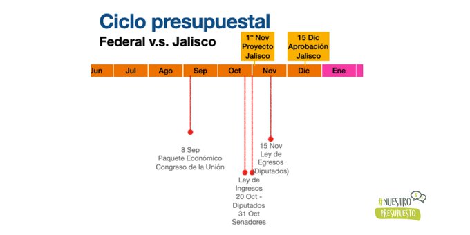 Durante los siguientes meses veremos mucha actividad alrededor de la discusión de los recursos que se van a ejercer durante el siguiente año, en orden cronológico esto es lo que sucederá a nivel nacional y en Jalisco: