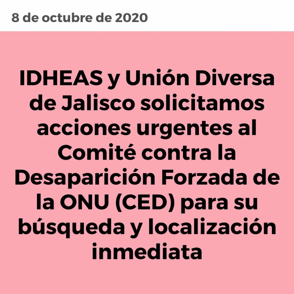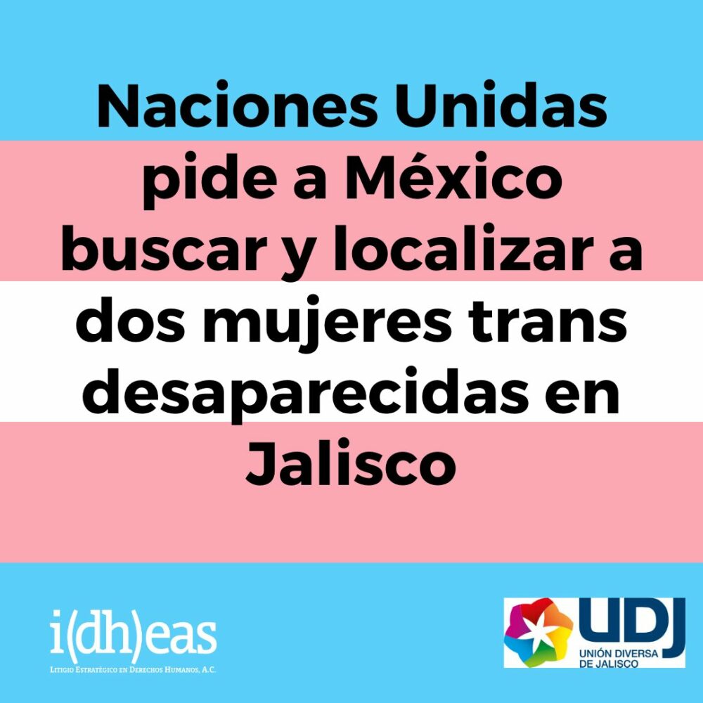 Habrá que recordar que como una forma de alertar a la comunidad internacional sobre la desaparición de estas dos jóvenes trans pero, además, para solicitar su ayuda, las organizaciones: I(dh)eas, Litigio Estratégico en Derechos Humanos A.C. y Unión Diversa Jalisco, enviaron el pasado 8 de octubre una solicitud de Acción Urgente al Comité CED; la cual, permite que las Naciones Unidas intervengan a través de este mecanismo de carácter humanitario y emitan recomendaciones que instruyan al Estado Mexicano a transparentar qué está haciendo o hicieron para localizar a Kenia y Karla, así como, para que lleve a cabo ciertas medidas cautelares en el proceso y para sus familias.