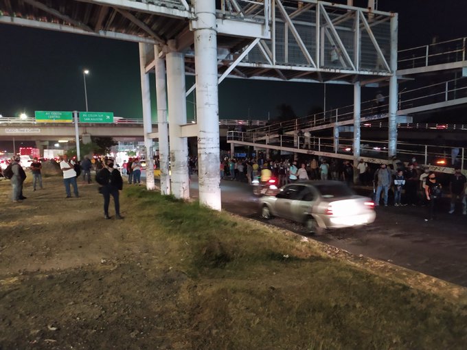 Usuarios del transporte público esperando abordar alguna de las rutas en Periférico Sur.