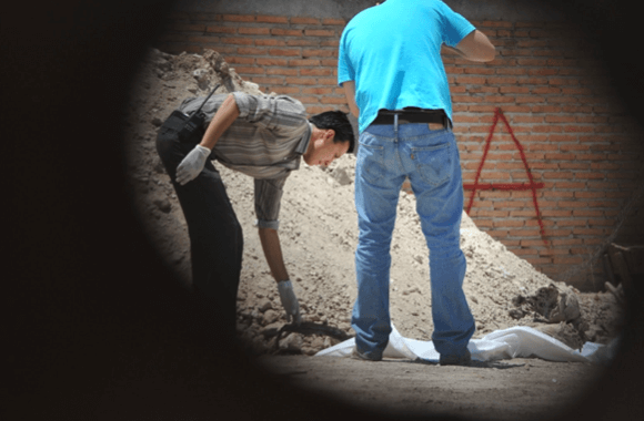 Aquel lunes 11 de abril de 2011, en la calle Constituyentes del fraccionamiento Las Fuentes, al noroeste de la ciudad de Durango, policías federales y militares cercaron con dos camionetas, una tanqueta y con cinta amarilla un precario taller donde se reparaban radiadores. Adentro, el ruido de la retroexcavadora nos impedía escuchar la conversación entre unos agentes ministeriales que usaban guantes y que, encima de sus uniformes negros, traían puestas batas blancas. A esos agentes les tocaba apilar los cadáveres que, de un hoyo del tamaño de una tina de baño, extraía la pala dentada con la que muerde la máquina retroexcavadora, mejor conocida como mano de chango.