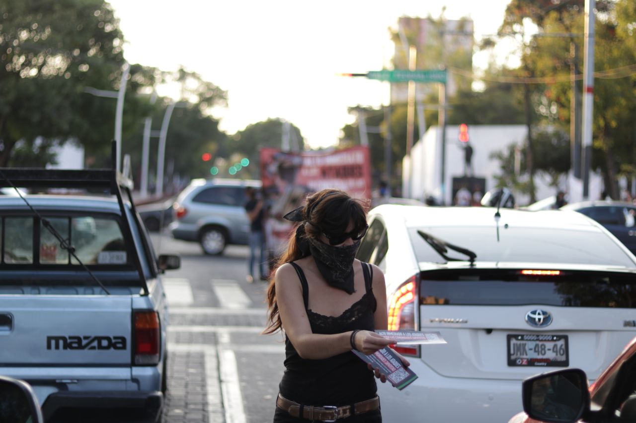 Con un despliegue de pancartas entre las avenidas Juárez y Federalismo en el centro de Guadalajara, Jalisco repartieron volantes y calcas a los transeúntes y conductores.