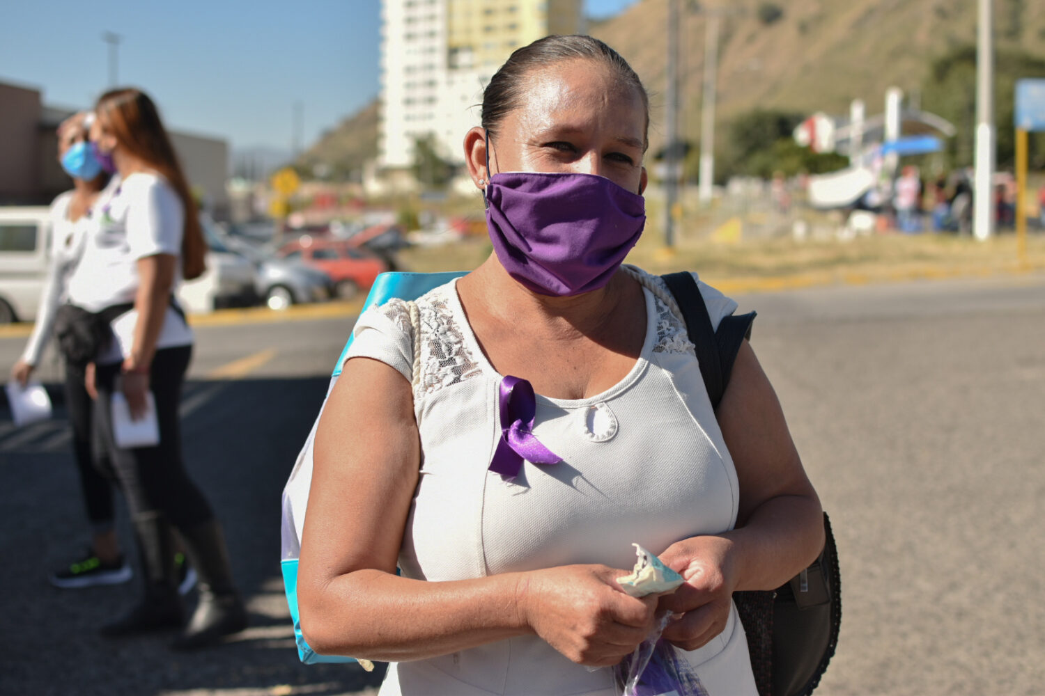 Vestidas de blanco y portando listones color morado, recorrieron Av. Guadalupe desde su intersección con la Av. Periférico, hasta llegar al Centro Comunitario La Colmena, en la colonia Colinas de la Primavera en Zapopan.