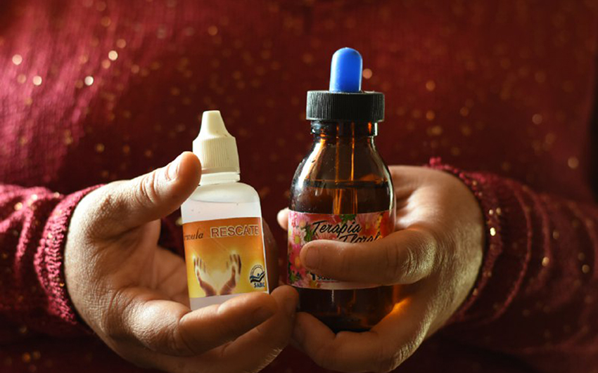 “Luego yo siempre traigo floral. Con eso las ayudo primero a tranquilizarse, a respirar, les doy masajes en los dedos para que se concentren y que puedan salir de la crisis”, comenta Yesy en la entrevista que concede en su casa, donde muestra las esencias de flores que siempre lleva en su bolsa para atender víctimas.
