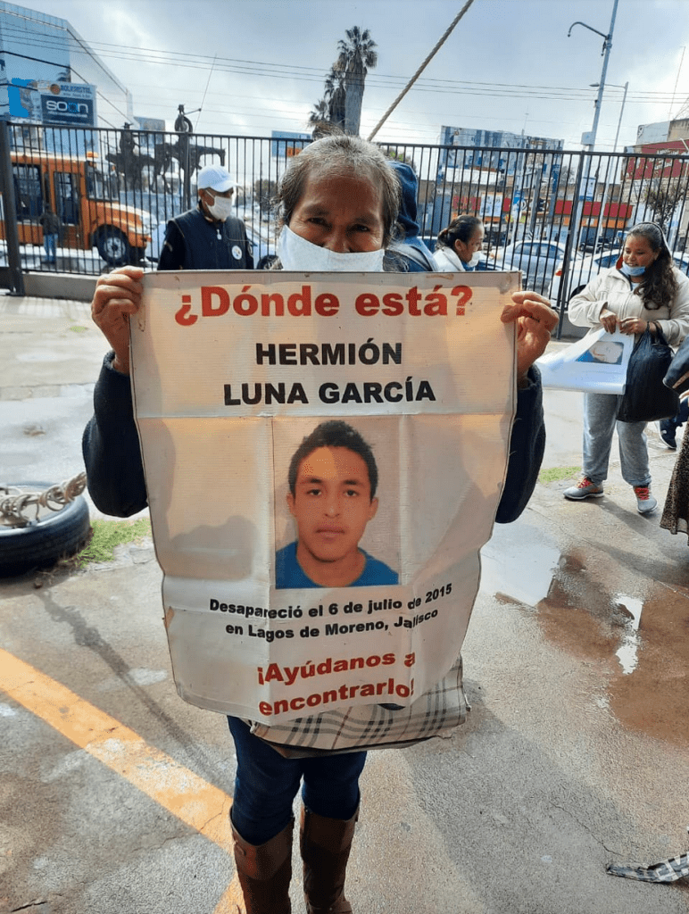 Enrique Zamarripa Tavarez desapareció el 24 de diciembre del 2015, cuando tenía 25 años, y su madre, María del Carmen Tavarez Amézquita, ha visitado dos semefos: el de Lagos de Moreno y ahora el de Aguascalientes. Catalina Mireles, líder del grupo, busca a su hija, Ana Elvira Castillo, también desaparecida desde hace cinco años. Desde el 2015, María de Jesús García busca a su hijo, Hermión Luna.