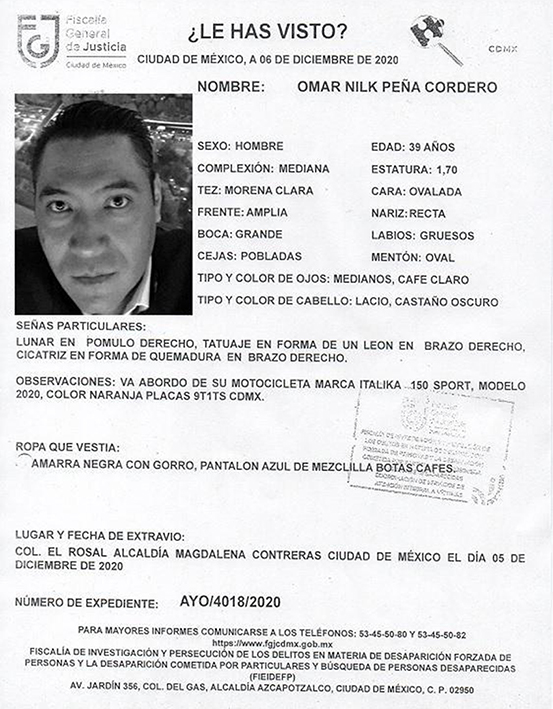 Te Buscamos OMAR PEÑA CORDERO pic.twitter.com/CNNQlUK2a8— #NiUnRepartidorMenos (@repartidorr) December 10, 2020