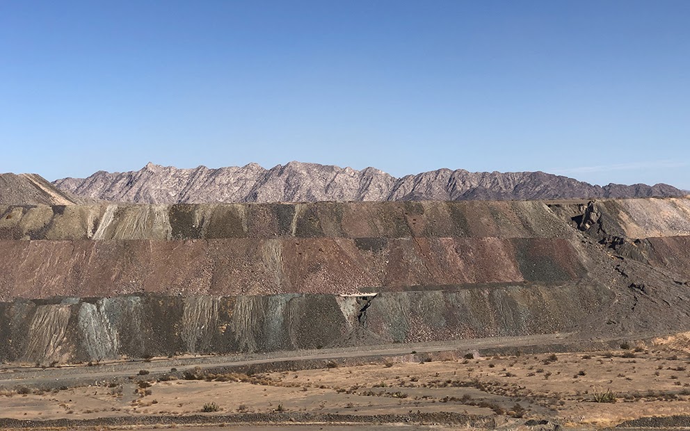 El recorrido en el desierto duró una hora, pero antes Erasmo Santiago y su hija Perla Santiago López hicieron varias paradas: primero en el cerro donde estaba parte de la mina Dipolo, ahora convertido en una cazuela después de que tractores rascaron la vena de la beta de oro.