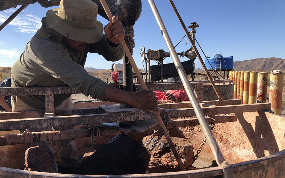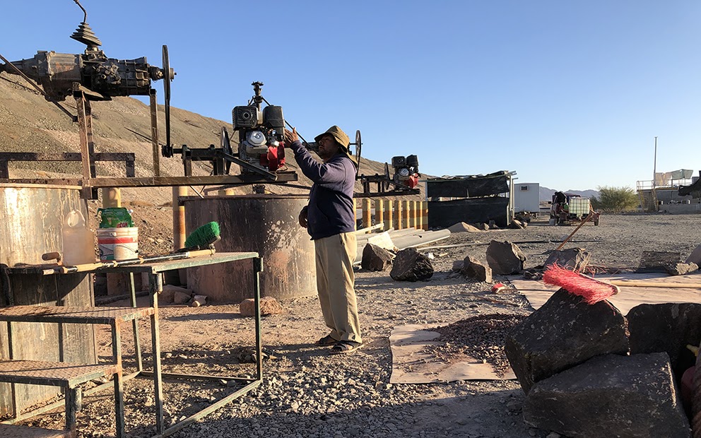 Después de lavar el molino artesanal, Erasmo Santiago tomó un sombrero y encendió el motor de su camioneta para hacer un recorrido en el ejido y lo que queda de la minera Penmont: “Esta tierra tiene beta de oro y plata”, explica mientras extrae tierra cargada de cuarzo y lo deposita en una cubeta.