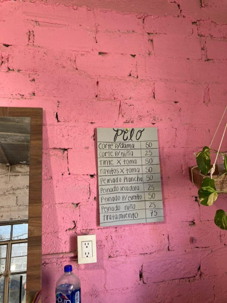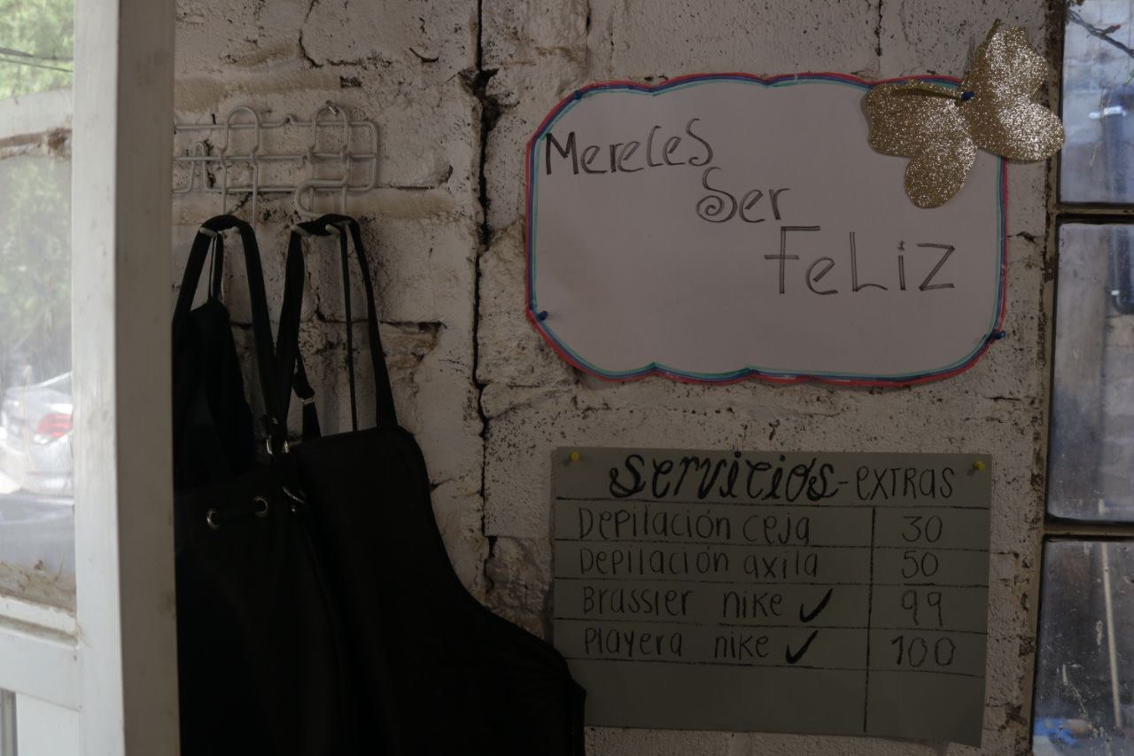 Vengo a hacerme el tinte de pelo, es que cobran bien barato, $50 pesos, confiesa una vecina de la colonia Rehilete antes de entrar a la Estética Barrial donde ya la esperan. Llegó puntal a su cita, pues no quiere perder su lugar.