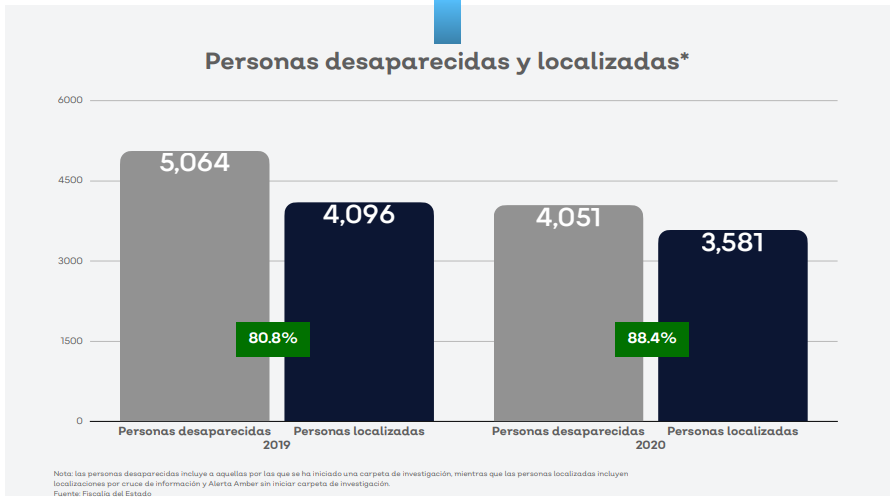 La especialista, advirtió que, si bien, las cifradas hablan de una disminución (2019-2020) del 23.30% en el número de personas desaparecidas en el estado, según el Registro Nacional de Personas Desaparecidas y No Localizadas (RNPDNO), es una realidad que muchos de estos casos no son denunciados: “las familias refieren que, por cada una de las personas desaparecidas, mínimo hay otras tres que no se están denunciando’’.
