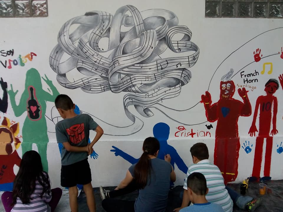 El espacio musical con el que contaban era muy importante y ahora lo han perdido porque algunos de ellos lo comparten con otros integrantes de su familia, es decir, que no cuentan con un momento y lugar específico para concentrarse en el aprendizaje de sus instrumentos. Allá tenían incluso un mural que pintaron entre ellas y ellos.