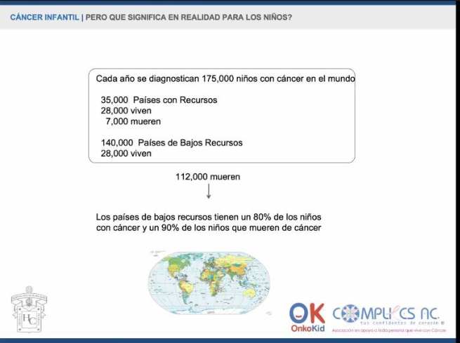 “¡En algunas regiones no se tiene medicamentos, no hay trasplantes, no hay diagnósticos estamos enfrentando un reto importantísimo en el diagnóstico y en el tratamiento de los niños!’’ mencionó con preocupación al presentar una gráfica global sobre cáncer infantil.