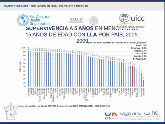 En ésta, México se encuentra en el sexto lugar mundial con mayor número de muertes de niños y niñas con cáncer, con una supervivencia nacional del 52%, mientras que, países como Alemania, cuentan con 91% de supervivencia para esta enfermedad.