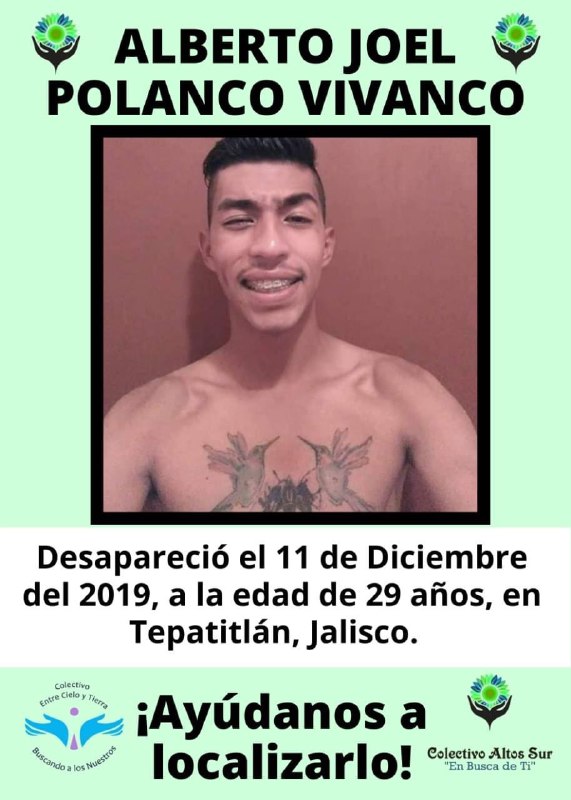Cuando su madre se enteró de su desaparición pidió ayuda a la policía de Capilla de Milpillas, pero le aseguraron que no podían hacer nada hasta que levantara una denuncia ante la Delegación de la Fiscalía del Estado en Tepatitlán. Lo hizo, presentó una denuncia por la desaparición de su muchacho y acudió a la Delegación del Instituto Jalisciense de Ciencias Forenses para que le realizaran la toma de ADN correspondiente; sin embargo, hasta ahora, como en los otros casos, no ha tenido más información: