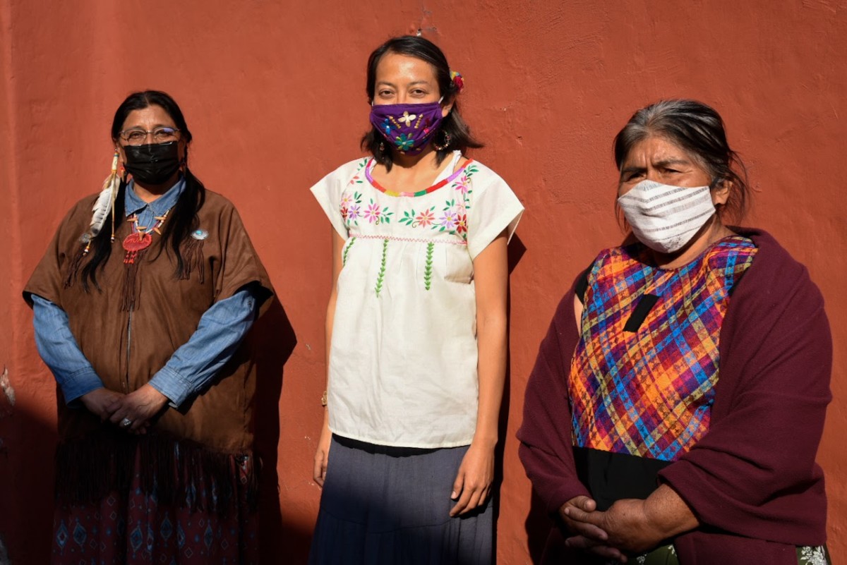 Norma Meza, Karina Sánchez y Teófila Palafox realizadora audiovisuales indígenas de distintas generaciones.
