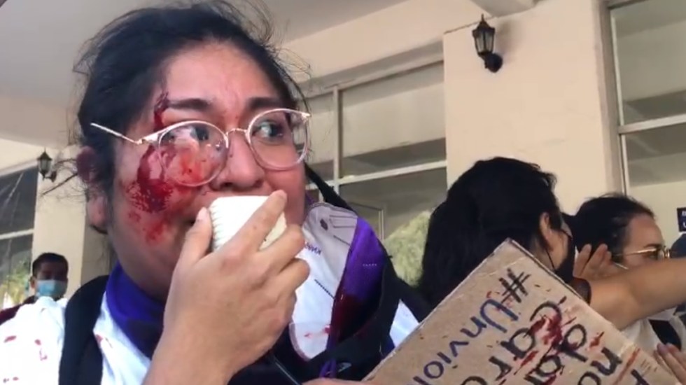 Durante su manifestación, que aclaran fue pacífica, se presentaron simpatizantes de Morena que comenzaron a hostigarlas hasta que una de las asistentes agredió a la activista guerrerense, Yolitzin Jaimes directamente en el rostro con un megáfono. Inmediatamente comenzó a sangrar, los medios se abalanzaron para enfocar la herida y el letrero que portaba en las manos también fue invadido de sangre, aún así en el se podía leer lo siguiente:
