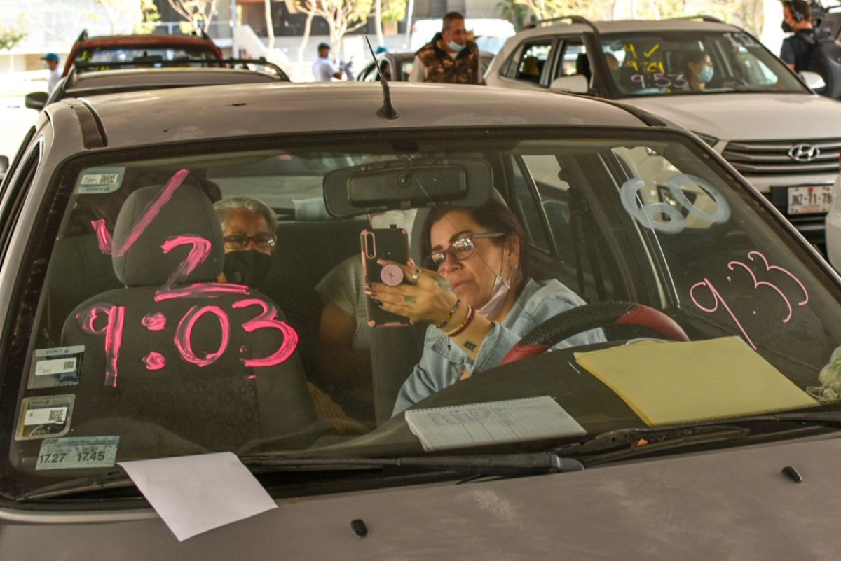 María y su familia llegaron, igualmente, desde el jueves. Su hijo fue quien permaneció en la fila dentro de su automóvil para asegurarse de que su madre y padre recibieran la inmunización. Aunque los nervios estuvieron presentes durante la espera, su emoción fue permanente por la idea de que el temor de contagiarse terminara: “ya venimos preparados mentalmente”, respondieron al unísono desde su auto.