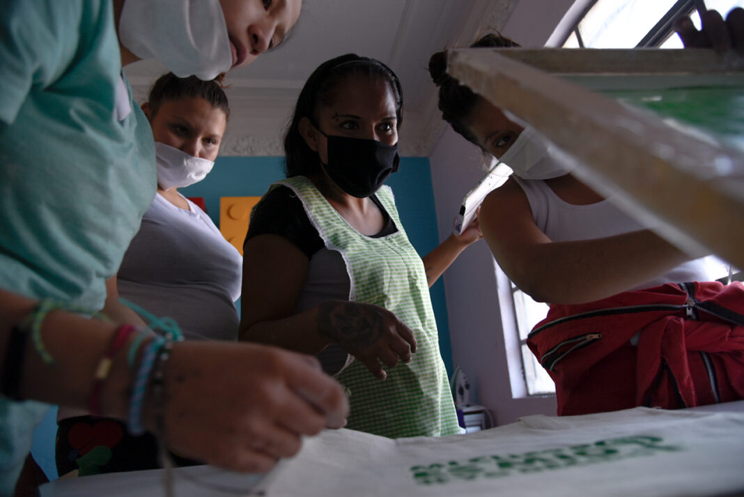 Un taller de serigrafía en la alcaldía Venustiano Carranza -donde mujeres de poblaciones callejeras producen bolsas y pañuelos para conseguir estabilidad económica. es también un acercamiento a los feminismos. Un espacio seguro donde hablan de sus violencias pasadas y conocen de manera vivencial el significado de sororidad