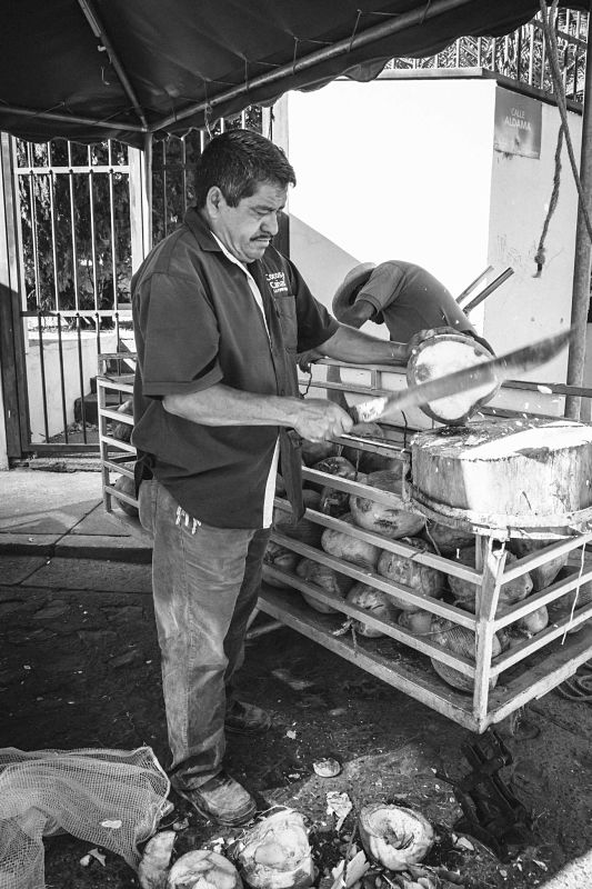 Vendedor de cocos en Parroquía de San Agustín, Tlajomulco de Zúñiga, Jalisco.