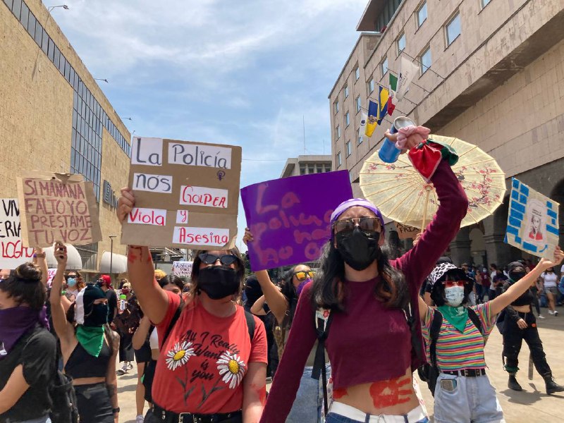 Entre sus consignas las integrantes del Frente Feminista de Jalisco demandaron alto a la violencia policial y reconocieron que estas prácticas son recurrentes también en el estado de Jalisco en contra de las mujeres; aseguraron que en medio de este contexto las fuerzas policiales además de agredirles de manera directa y cometer abusos, el sistema de seguridad y procuración de justicia mantiene una deuda pendiente al no detener y sancionar a sus agresores.