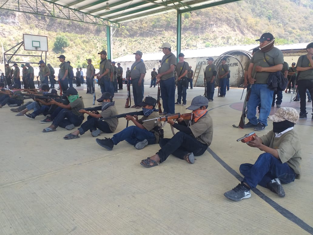 También dispararán a un bordo de tierra como símbolo de su iniciación oficial en las actividades de resguardo y defensa de las comunidades nahuas, que resisten desde hace 11 años a los ataques de un grupo criminal que en esta zona se conoce como Los Ardillos.