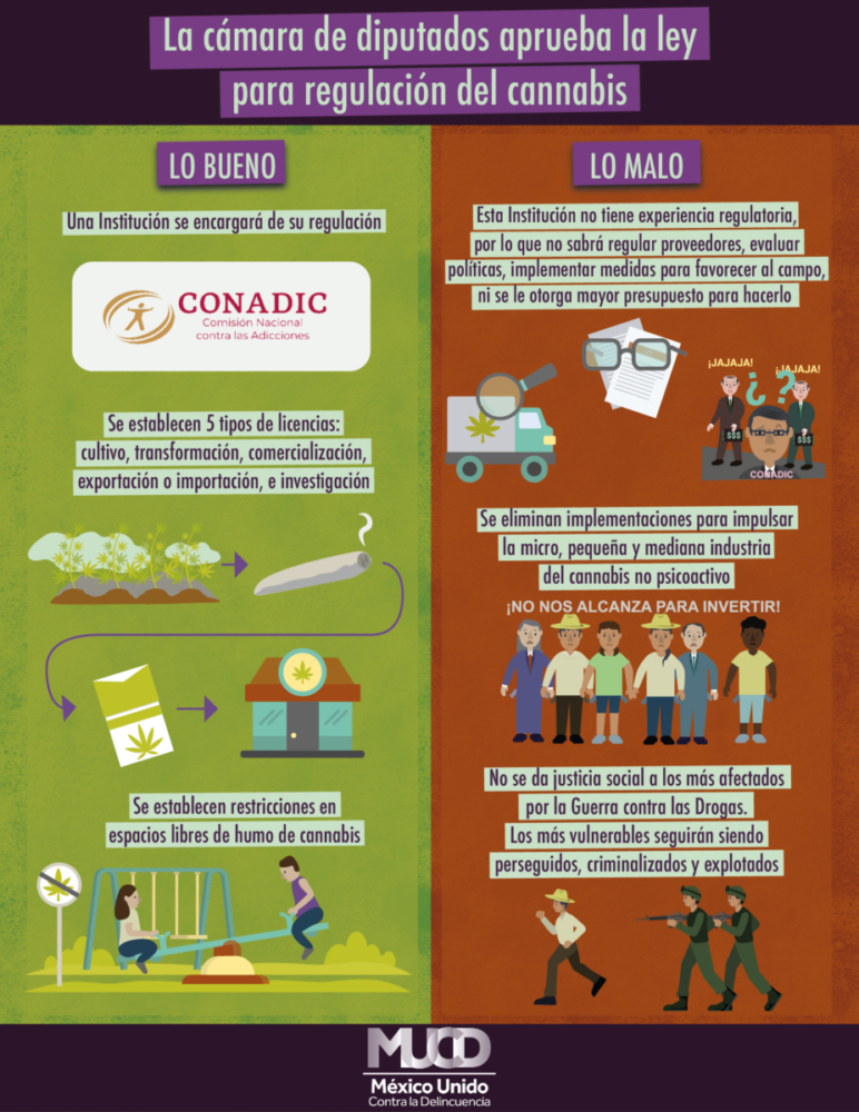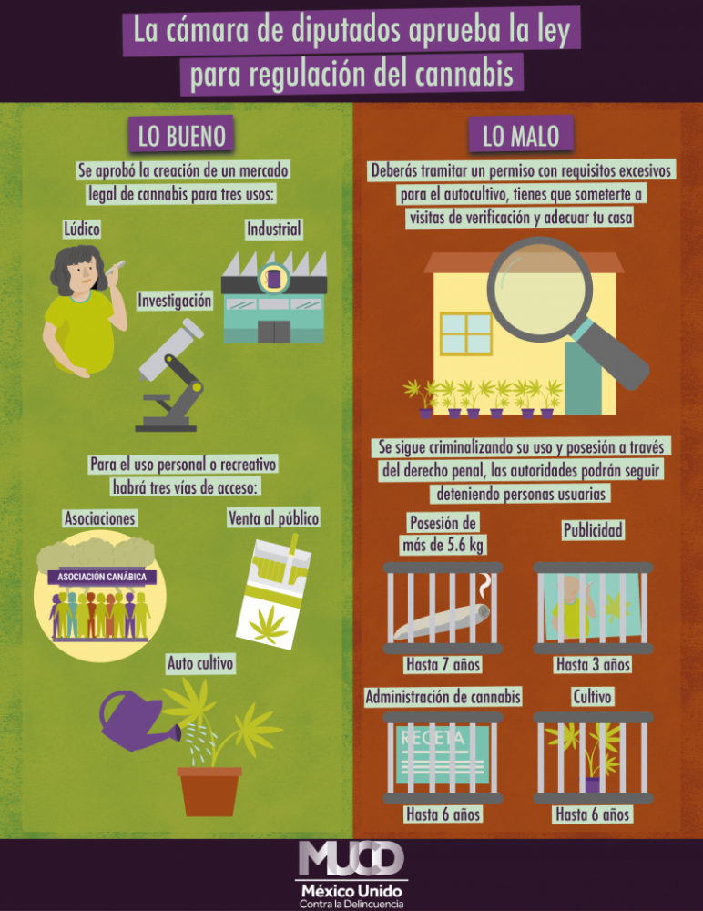 Sin embargo, permanece con ciertos aspectos que no pueden ser pasados por alto si se quiere detener la criminalización de quienes la consumen, así lo reconoce la organización México Unido Contra la Delincuencia (MUCD) .