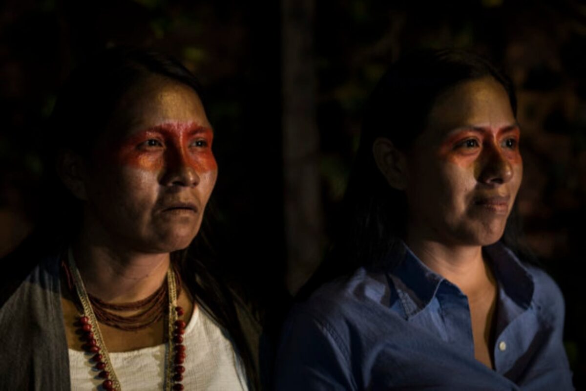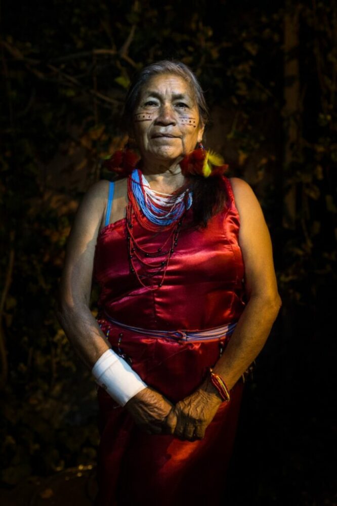 “La mayor parte de mujeres amazónicas que estamos aquí somos madres —explica Gloria Ushigua, presidenta de la Asociación Mujeres Pastaza, líder del pueblo Sapara—; pasamos juntas con la tierra. Sembramos. Buscamos la comida. Y por eso nuestro mandato rechaza la explotación petrolera”.