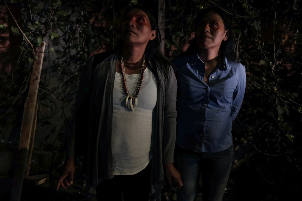 De izquierda a derecha: Alicia Coawiya y Yolanda Omaca, líderes waorani, observando las estrellas. Foto: Josué Araujo-Fluxus Foto.