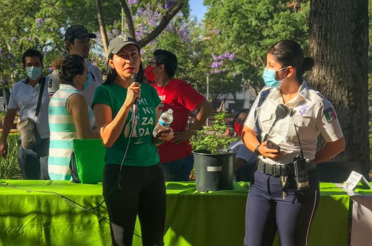 Angélica Rodríguez del Colectivo 4:20 dando indicaciones acerca del foro realizado el pasado 20 de abril en Parque Rojo en Guadalajara, Jalisco (Foto: Josué Ibarra).