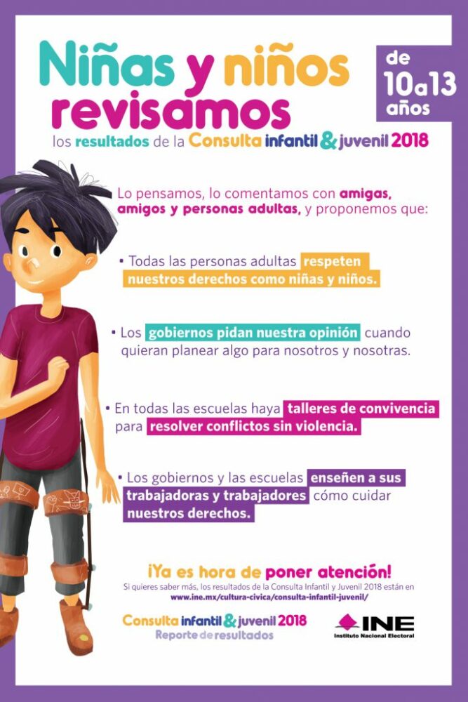 Las infancias y las adolescencias en el marco de los procesos electorales deben ser siempre escuchadas, interpeladas e integradas porque la opinión de niños, niñas y adolescentes es necesaria para saber qué piensan, sienten y necesitan; por ello, el Instituto Nacional Electoral (INE) ha realizado la Consulta Infantil y Juvenil desde 1997.