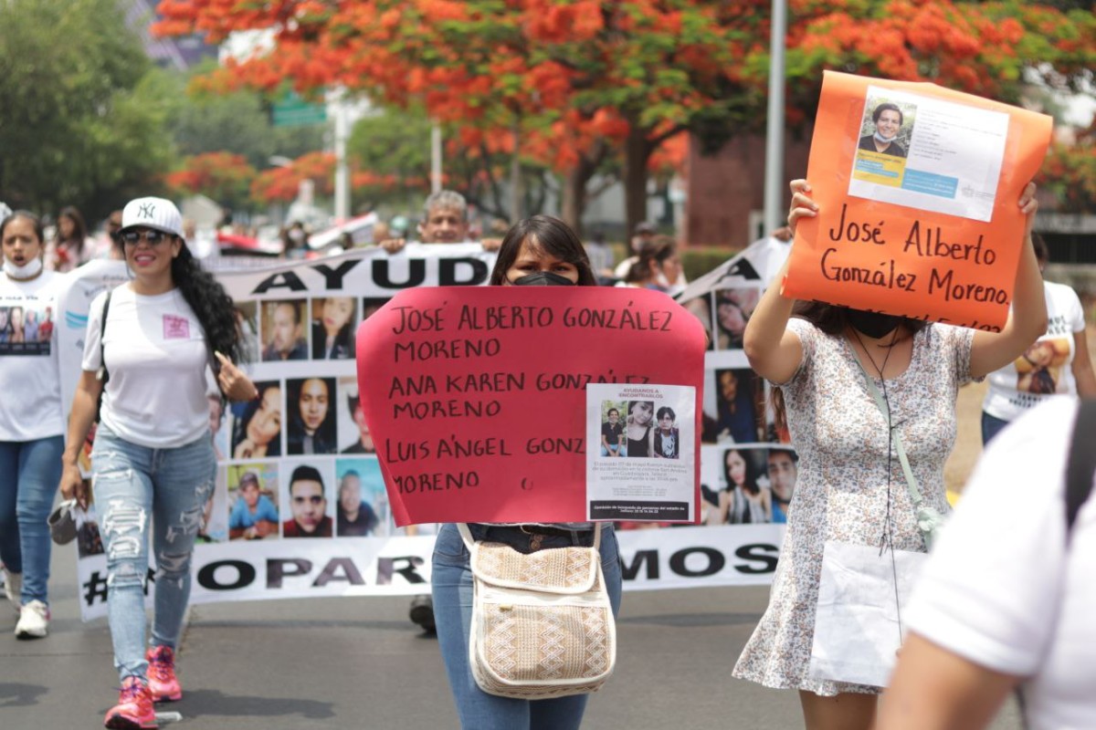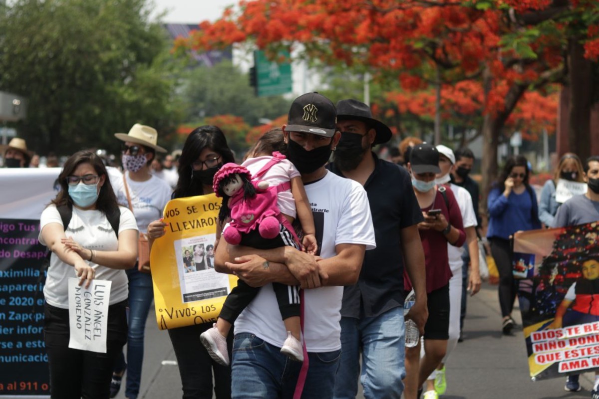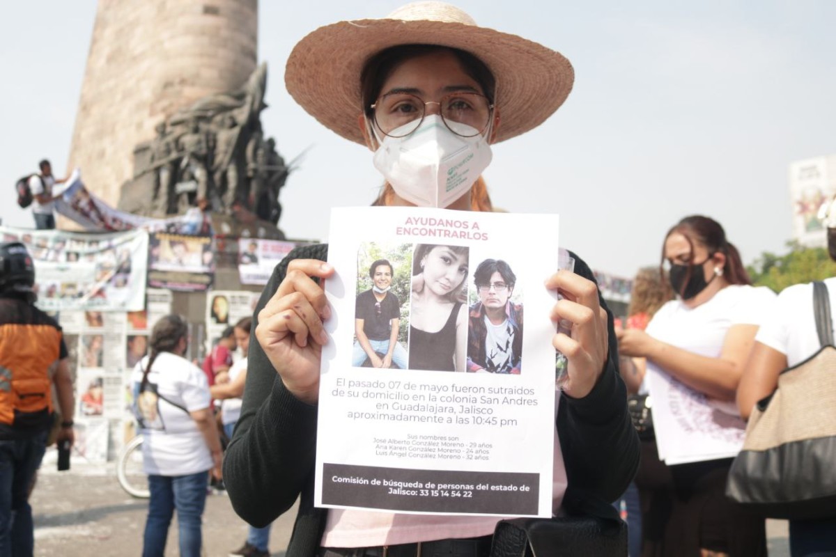 En la movilización, estuvieron presentes los familiares y amistades de los hermanos Ana Karen, José Alberto y Luis Ángel González Moreno, quienes fueron sacados de su domicilio en la colonia San Andrés, Guadalajara de manera forzada, por ocho hombres armados la noche del 7 de mayo del 2021 y después desaparecidos a bordo de una camioneta “tipo pick up” blanca.
