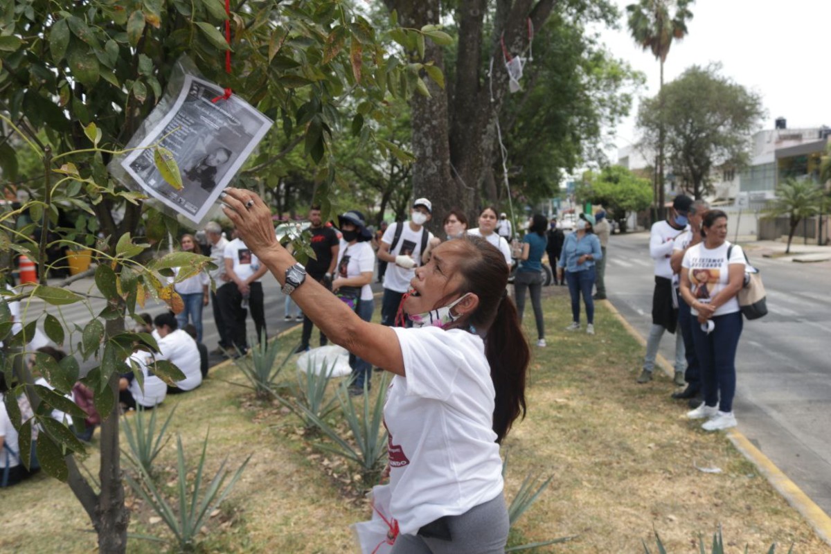 Finalmente, con hilos amarrados a pelotas para hacer contrapeso, las y los familiares colgaron las fichas de búsqueda de sus amores desaparecidos en los árboles que se encuentran frente de Casa Jalisco, con el objetivo de que sean “más difíciles” de quitar, puesto que, todas las lonas, carteles y pancartas que han colocado en las vallas que se encuentran a las afueras de la residencia oficial del gobernador han sido retiradas.