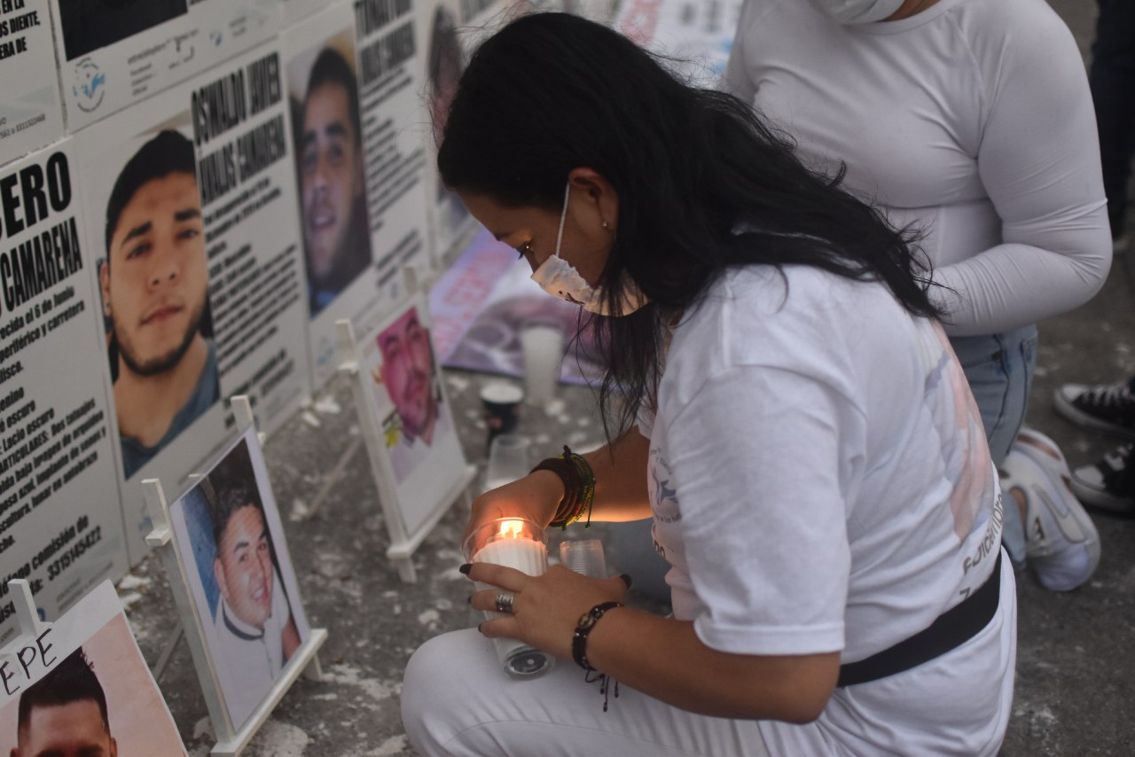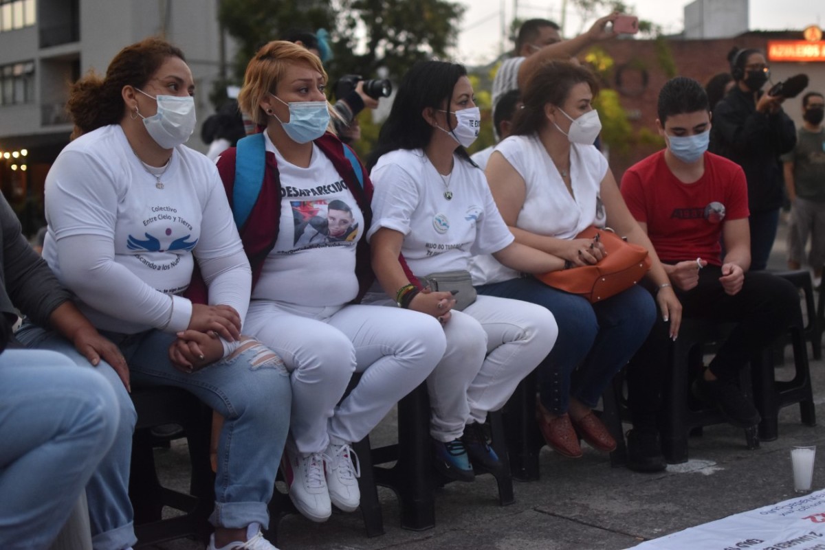 Aunque la lluvia se hizo presente apenas a unos minutos de iniciar esta velada de memoria, las madres junto con jóvenes solidarios y solidarias encendieron veladoras, compartieron poemas, palabras amorosas, música y algunos alimentos.